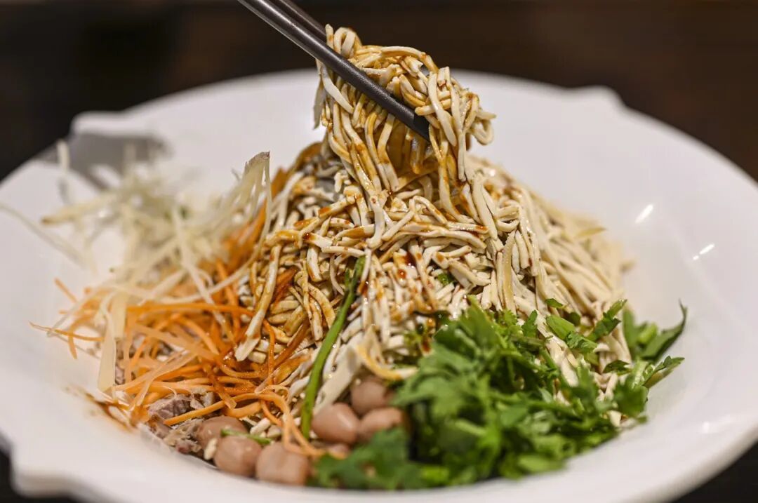 【大煮干丝】用的是江南特产的豆腐干,被厨师切成细得像头发丝一样的干丝,再和火腿、口蘑、黑木耳这些一起煮。煮出来的干丝嫩得恰到好处,不老也不生,放进嘴里就化了,那汤汁鲜得哟~